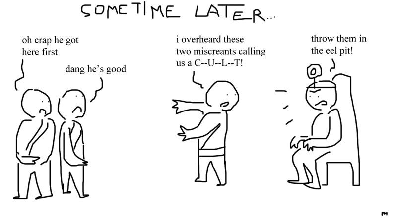 A lot of the kids in the anime cult were alienated from their parents, who didn’t share their interests. In several instances, the parents were stodgy, unsympathetic Christians, if their children were to be believed. My parents were Catholic, but both of them were always happy to discuss doctrinal matters in detail with me if I had questions. My parents also didn’t watch a lot of anime, but my dad was at least opinionated about it! We also watched tons of live-action Asian movies, so if I wanted to have a conversation about my interests, I didn’t have to go to online boards full of crazy people to talk about them…I could talk to the crazy people in my own household!